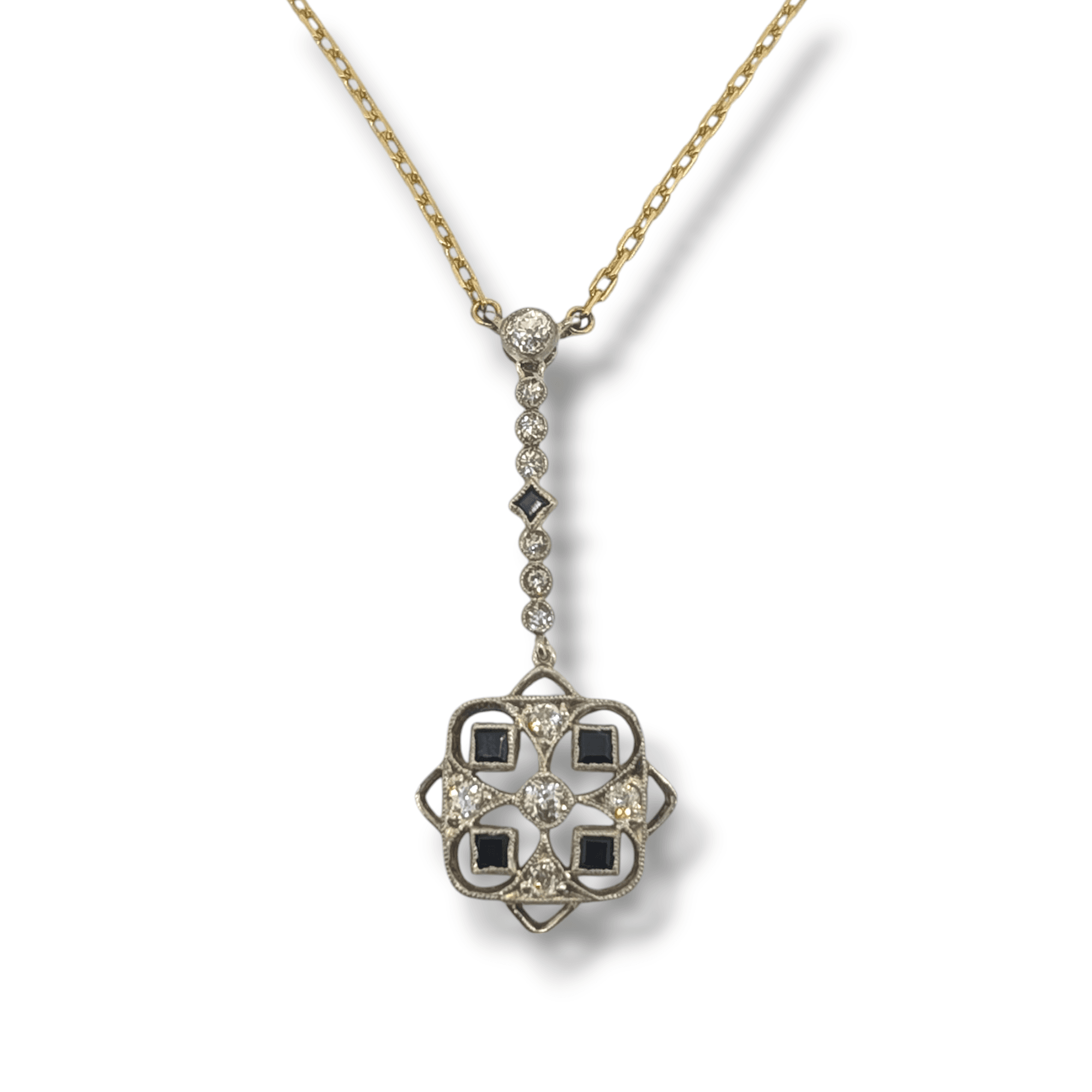 18 Carat & Platinum Edwardian Old Cut Diamond & Onyx Pendant