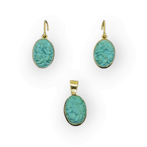 15 Carat Gold Carved Soap Stone Earrings & Pendant Set